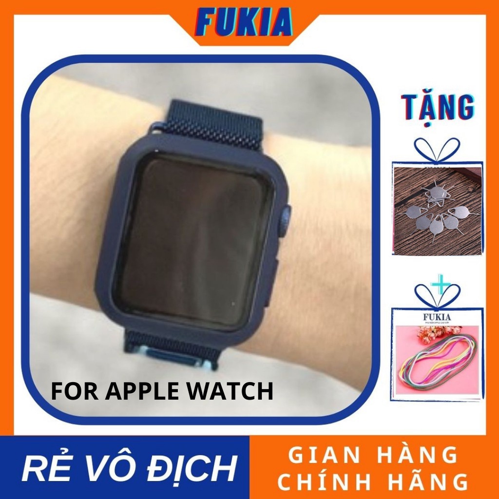 FUKIA cam kết: Dây thép milan xanh navy và ốp liền kính cường lực dành cho Apple Watch Series 1/2/3/4/5/6/SE size 38/40/42/44mm