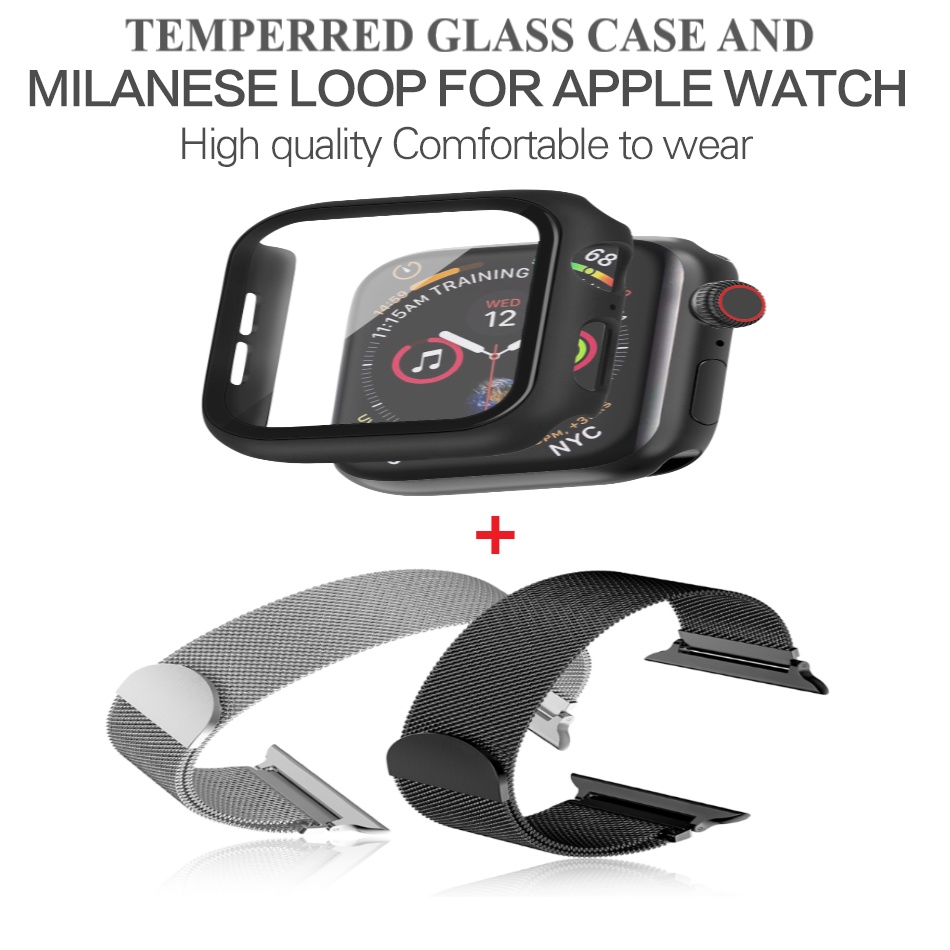 Dây Thép Milanese Apple Watch + Ốp Kính Cường Lực Apple Watch Series 7/6/5/SE/4/3/2/1 Size 38-40-41-42-44-45