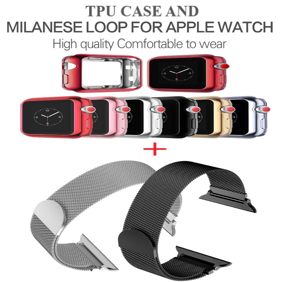 Dây Thép Milanese Apple Watch + Ốp TPU Bảo Vệ Viền Apple Watch Series 7/6/5/SE/4/3/2/1 Size 38-40-41-42-44-45