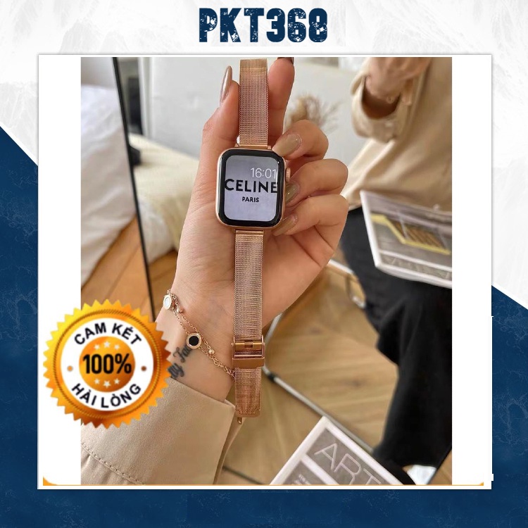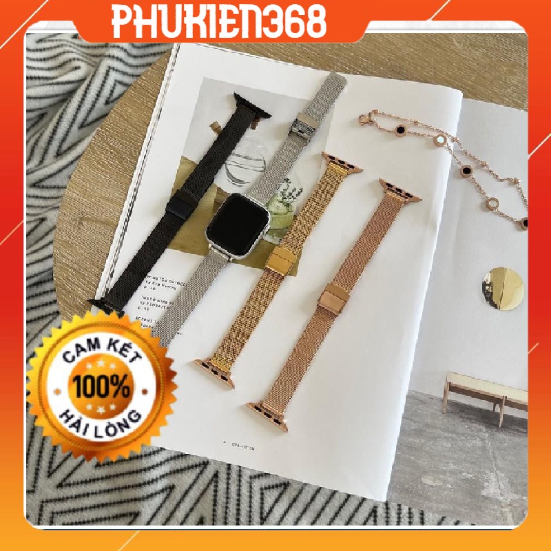 Dây Đeo Apple Watch bản nhỏ Titan siêu bền - Khóa gài dành cho Apple Watch Series 6/5/4/3/2/1 - hàng phụ kiện» Dây Apple Watch kiểu thép lưới Milanese Loop (phụ kiện loại chuẩn đẹp)