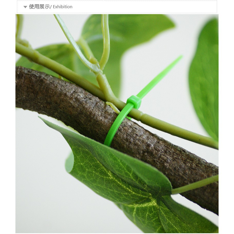 Ứng dụng: dây thít nhựa xanh dùng buộc thảm cỏ treo tường, dây lá giả như lá nho, lá trầu bà, cây cảnh...
