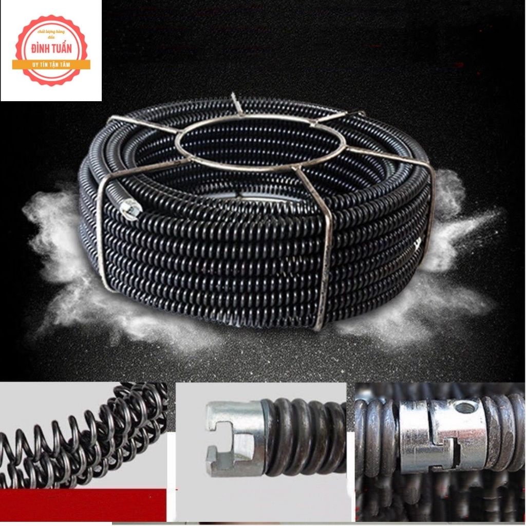 Dây thông tắc cống, bồn cầu, bồn rửa dùng cho máy khoan (kèm (9m +6m) dây lò xo phi 16 + 6 đầu thông + 1 đầu kết) nối