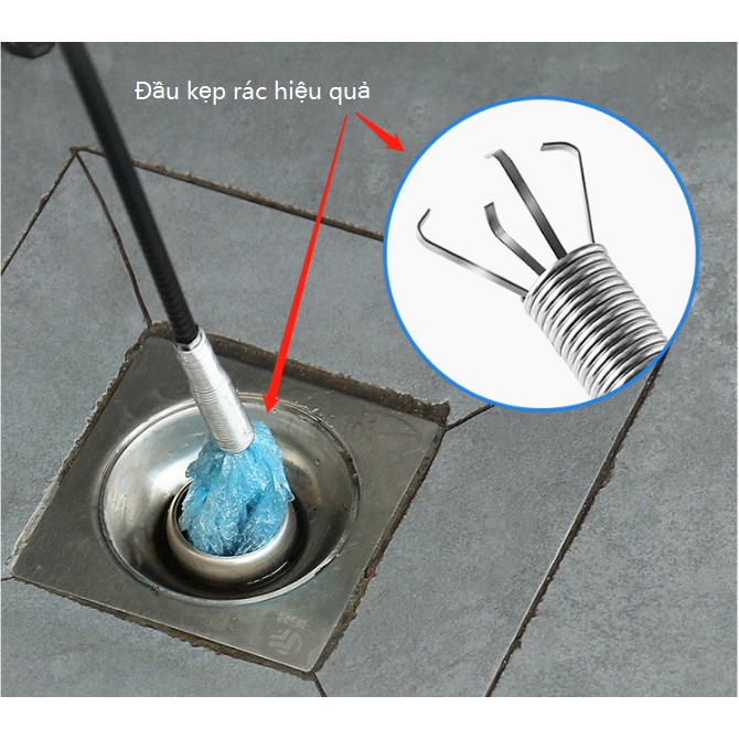 Giới thiệu Dây thông tắc cống lò xo đa năng có đầu kẹp rác hiệu quả tiện dụng