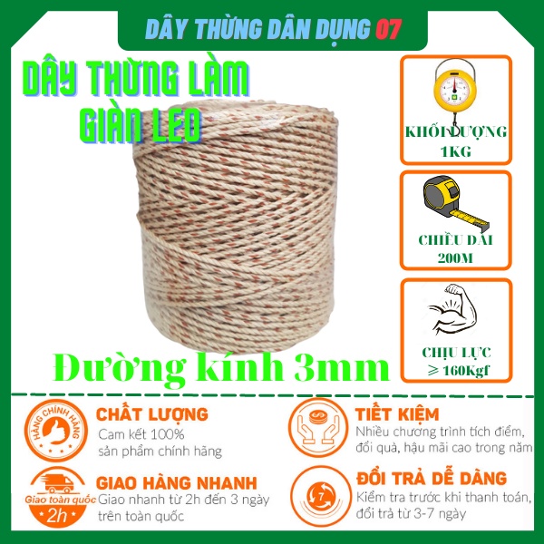 Giới thiệu Dây thừng chuyên giăng giàn cây leo 200 mét|| 1kg. dây thừng 3mm