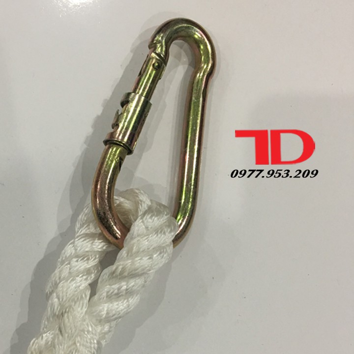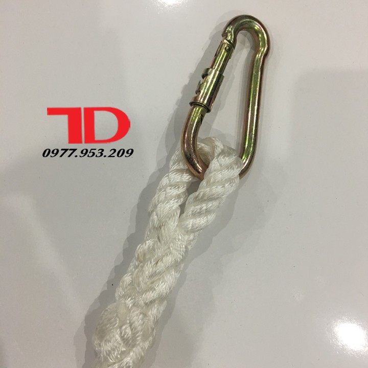 THÔNG TIN SẢN PHẨM: 15 mét dây thừng có khóa chuyên dụng. Sản phẩm được sử dụng nhiều trong công việc yêu cầu cao về tải trọng, độ bền, mềm, dễ buộc, nhưng ma sát không cao. Dùng làm dây neo đậu tàu thuyền, dây buộc tàu, dây an toàn, dây cẩu trong công tác an toàn bảo hộ lao động.