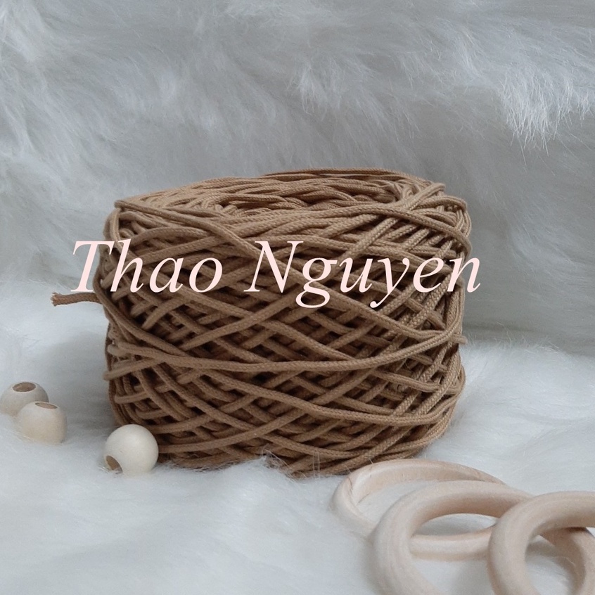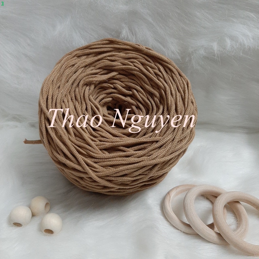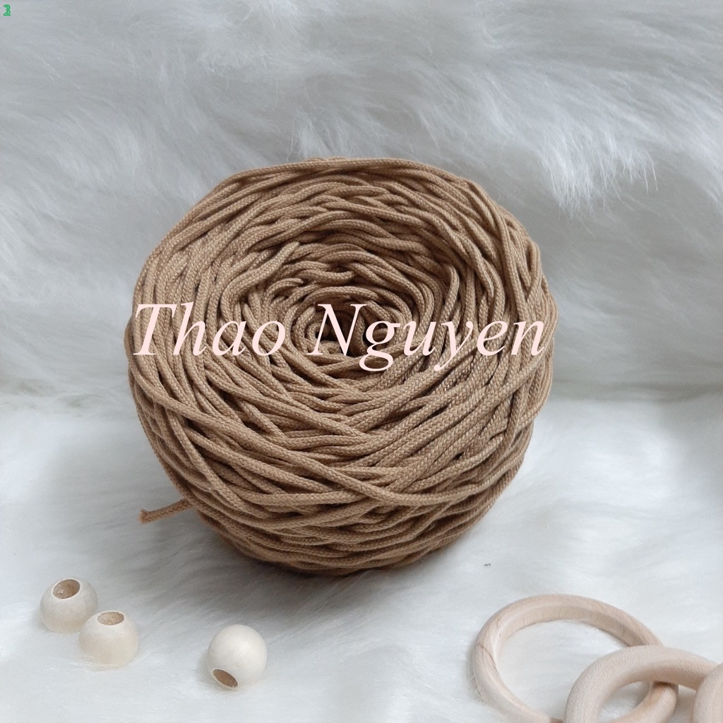 Dây thừng dệt mắt na đan macrame, đan túi, sz 3mm, Màu BE ĐẠM