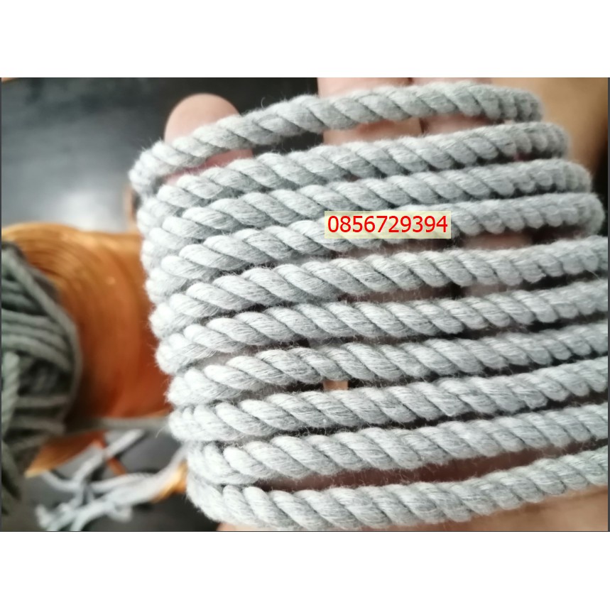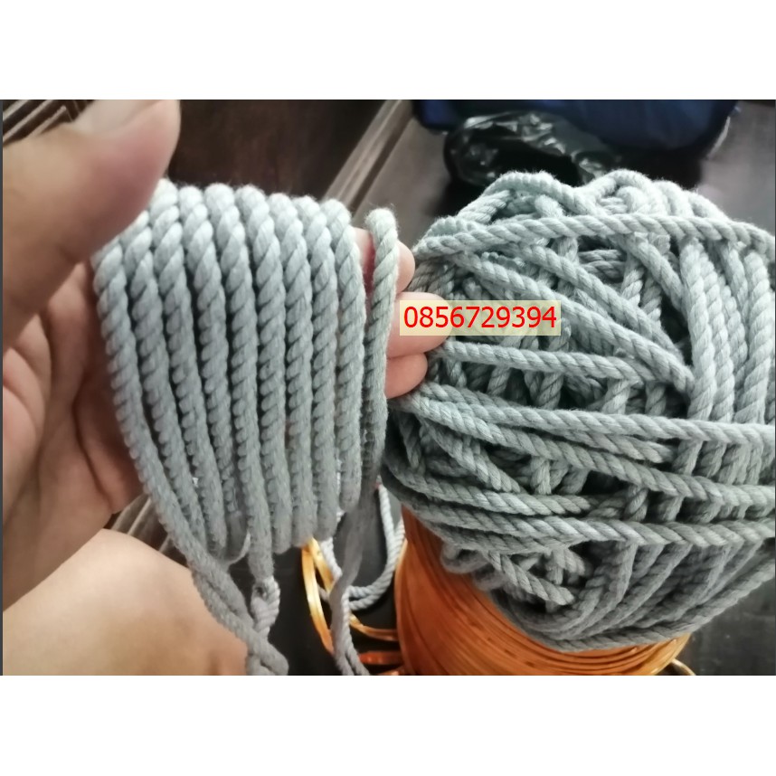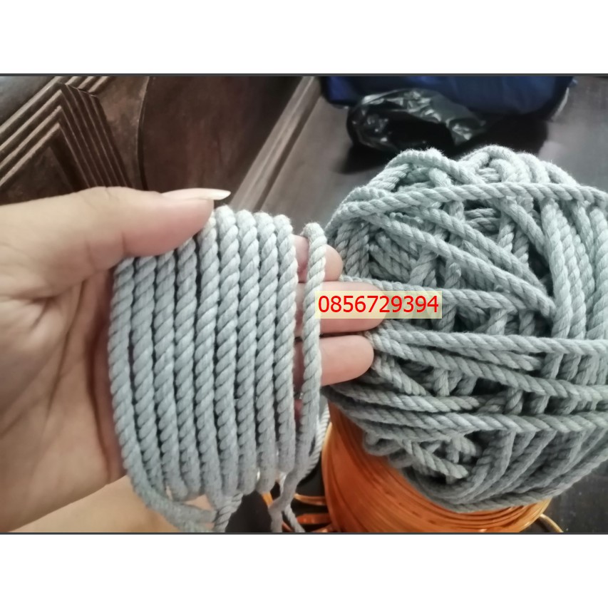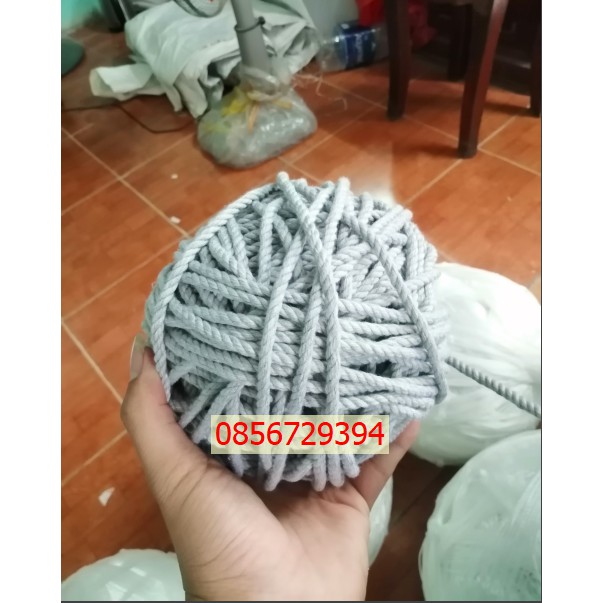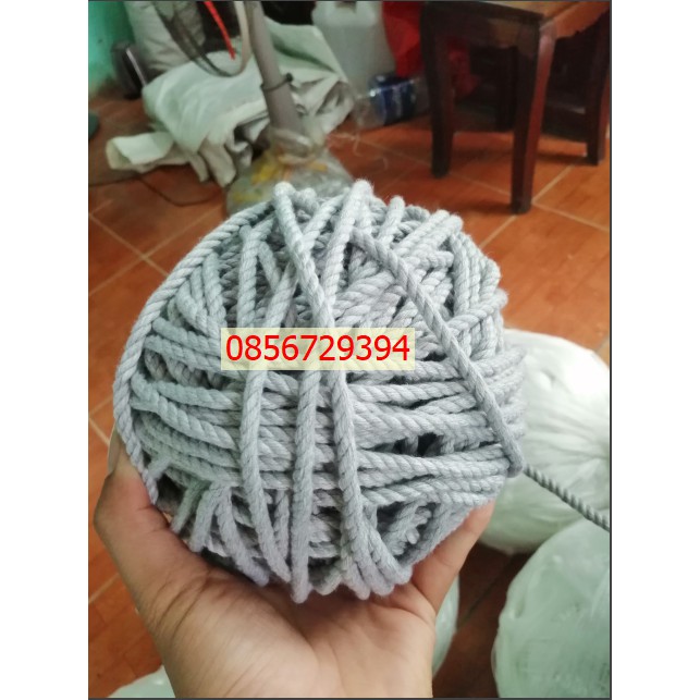 Giới thiệu Dây thừng se cotton size 5mm sợi màu Xám trang trí mềm mịn thắt macrame (1kg)