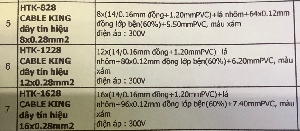 Giới thiệu Dây tín hiệu điều khiển 8 lõi, 12 lõi,16 lõi đơn giá 1 mét
