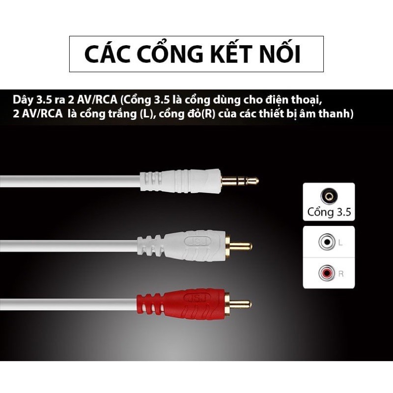 + Cáp chuyên dùng để kết nối từ cổng âm thanh loa 3.5mm của máy tính, điện thoại và tất cả thiết bị phát âm thanh sang loa, âm ly hoặc 1 số thiết bị chuyên dụng khác qua 2 cổng AV/RCA.
