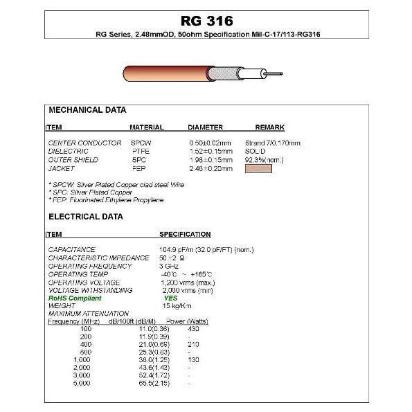 ❤️lưu ý: dây 316 có 2 loại RG 316 1 lớp chống nhiễu còn RG 316 D là 2 lớp chống nhiễu.