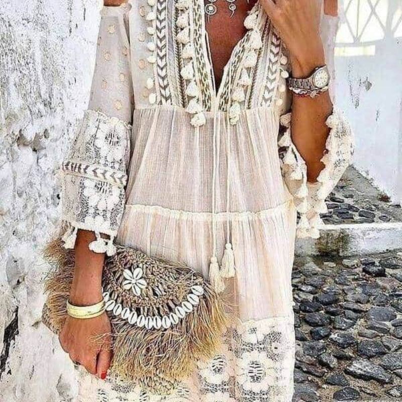 Dây trang trí, 2 đầu tua rua, chất cotton mềm, màu trắng kem không giãnDây dài 50cm