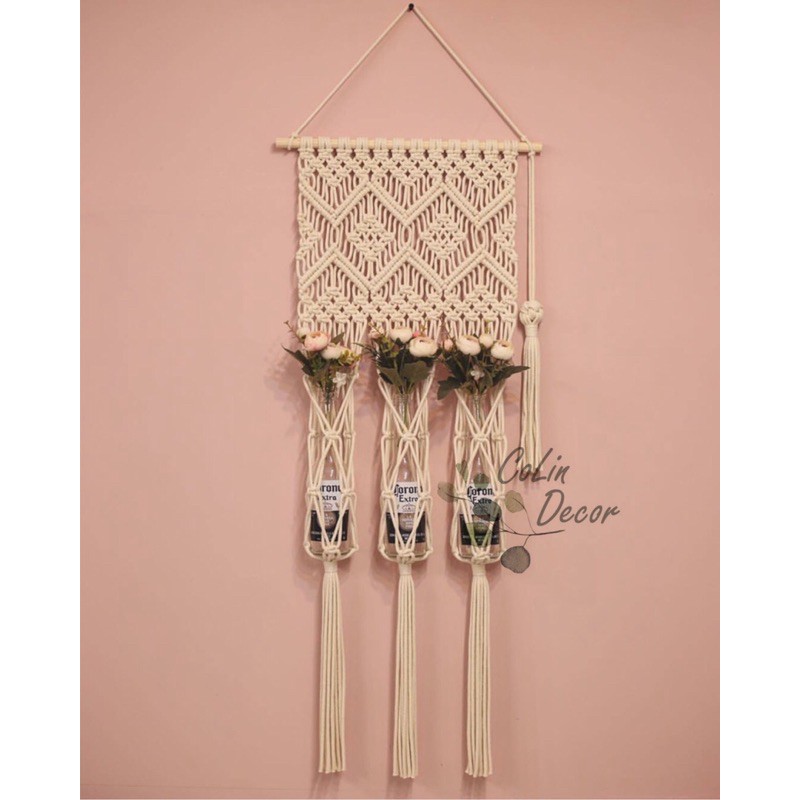Dây tre chậu cây được làm bằng chất liệu dây cotton , thanh gỗ thông phi 2 vô cùng chắc chắn .Sản phẩm không kèm chậu chai thuỷ tinh và bông