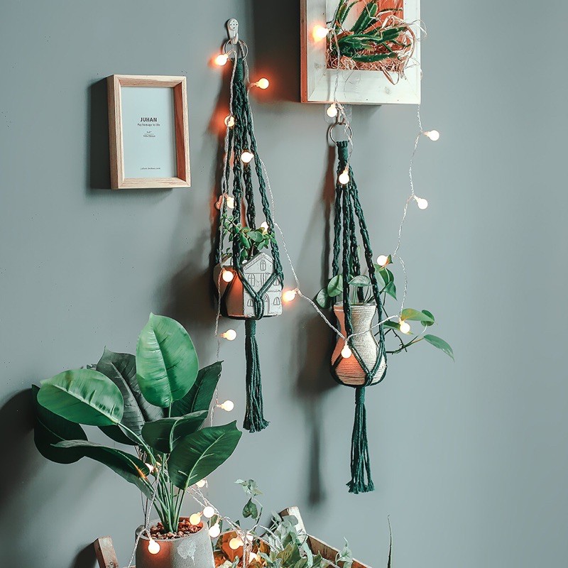Nhà cửa & Đời sống > Làm vườn > Chậu cây || Dây treo chậu cây xanh lá đậm Macrame trang trí, decor phòng xinh xắnCòn hàng