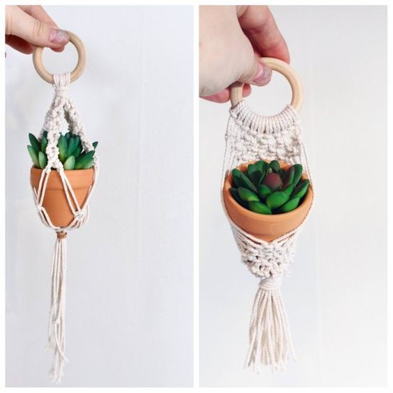 Dây Macrame treo chậu sen đá mini siêu dễ cưngKích thước
