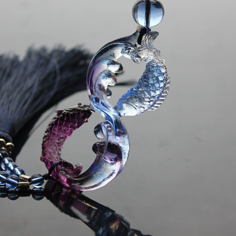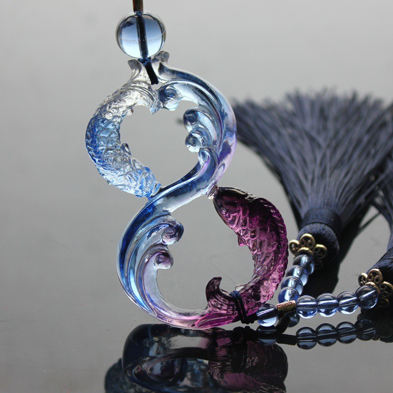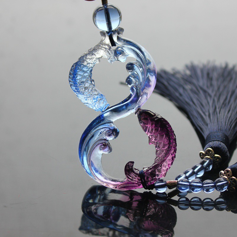 - Chất liệu tượng: Thẻ cá tạo hình số 08 ngọc lưu ly + dây tua rua- Màu sắc: Đa sắc