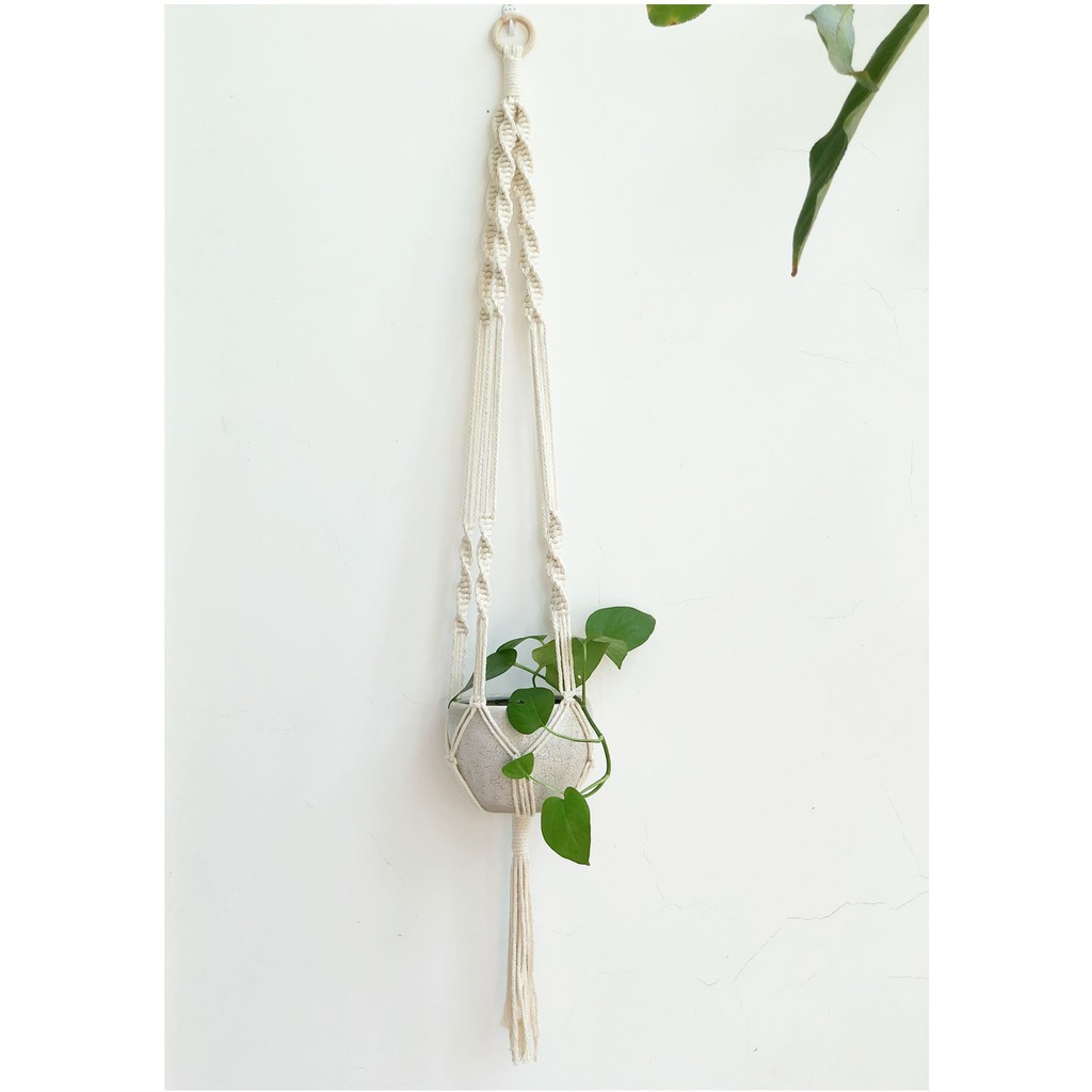 Dây treo trang trí chậu cây trong nhà Arata AMPH006Chất liệu: 100% dây cotton, đường kính 4mm, màu trắng kem tự nhiên + vòng gỗ tròn