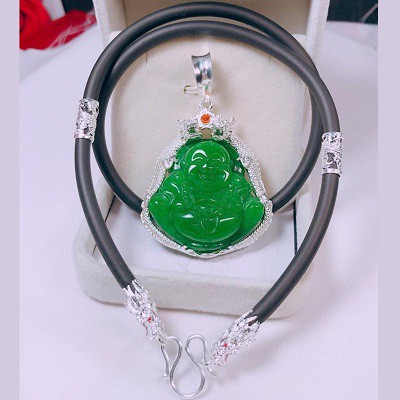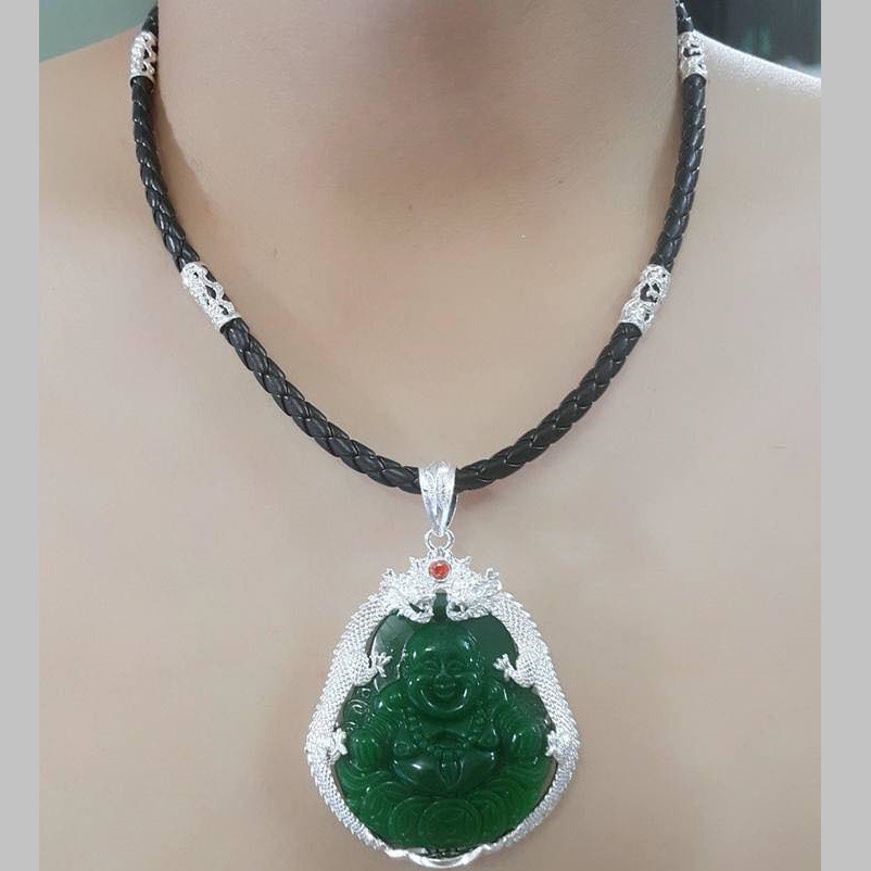 Giới thiệu Bộ dây truyền caosu kèm mặt di lặc đá xanh titan mạ bọc bạc cực chất giá hấp dẫn
