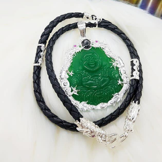 Bộ dây truyền caosu kèm mặt di lặc đá xanh titan mạ bọc bạc cực chất giá hấp dẫn