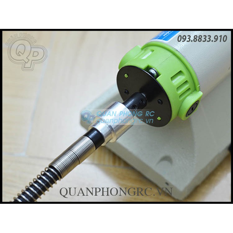 - Với dây truyền động nối dài giờ đây bạn có thể sử dụng máy khoan mài khắc chuyên dụng ở những chi tiết nhỏ nhất & những vị trí khó với tới, trong những khe chật hẹp nhất.