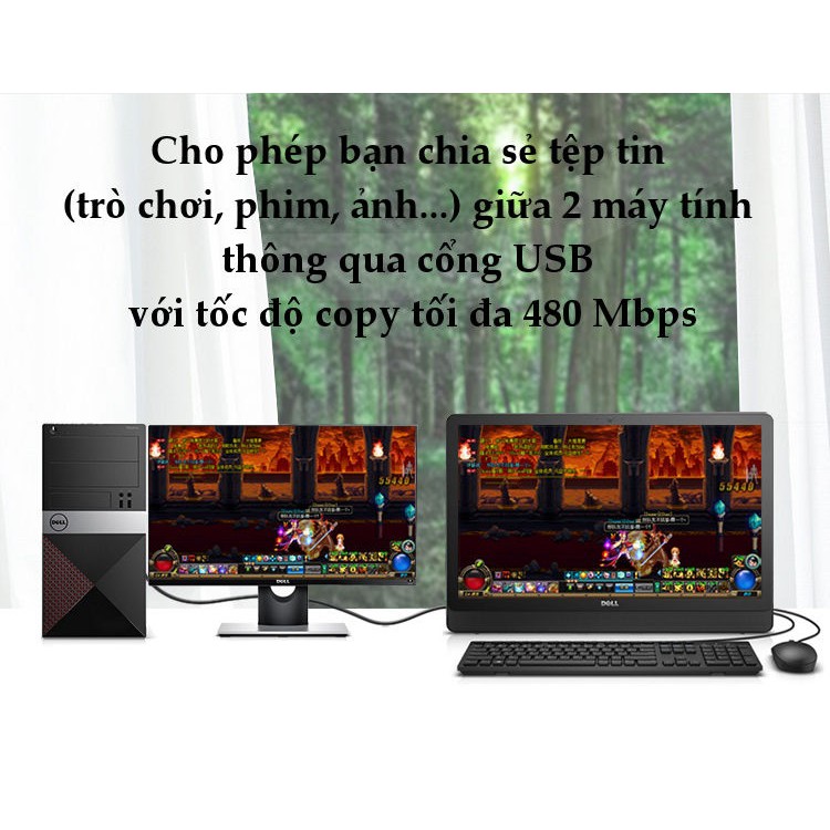 Cho phép bạn chia sẻ tệp tin (trò chơi, phim, ảnh, dữ liệu..) giữa 2 máy tính thông quả cổng USB với tốc độ copy tối đa lên đến 480 Mbps.