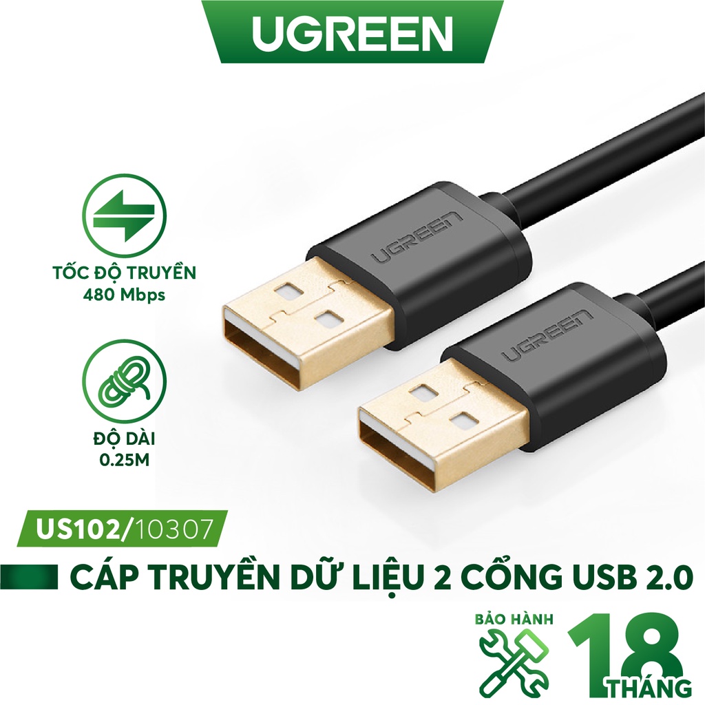 - Cáp 2 đầu đực USB 2.0 A Ugreen US102 giúp kết nối PC với các thiết bị của bạn, như HDD box , Android TV thiết bị ngoại vi và USB khác ...hỗ trợ tốc độ truyền dữ liệu lên đến 480 Mbps.