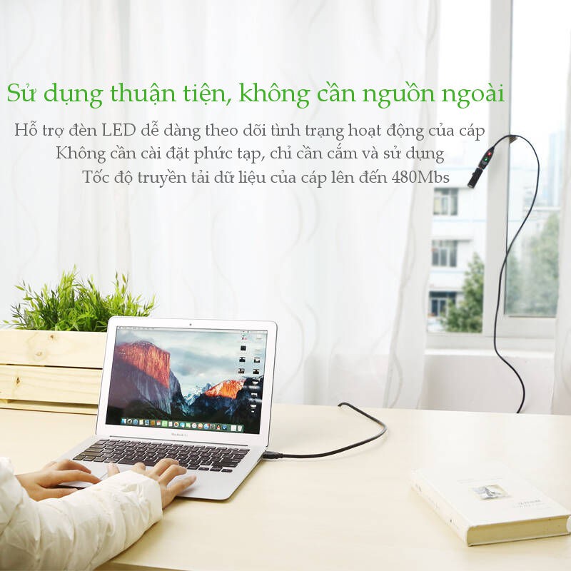 UGREEN US121 là cáp nối dài các thiết bị USB của bạn, như máy in USB, loa, máy quét, bàn phím, wifi... từ 10 lên 30m mà không bị mất tín hiệu hoặc giảm chất lượng* Thông số kỹ thuật: