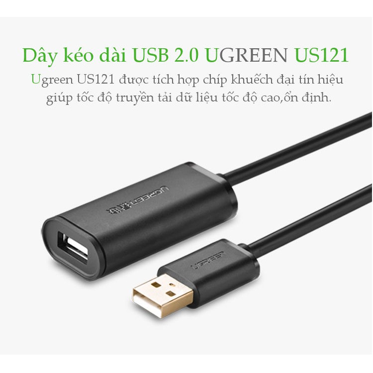 Máy tính & Laptop > Thiết Bị Lưu Trữ > USB & OTG || Dây USB 2.0 nối dài Active có CHIP, dài từ 5-30m UGREEN US121 - Hàng phân phối chính hãng - Bảo hành 18 thángCòn hàng