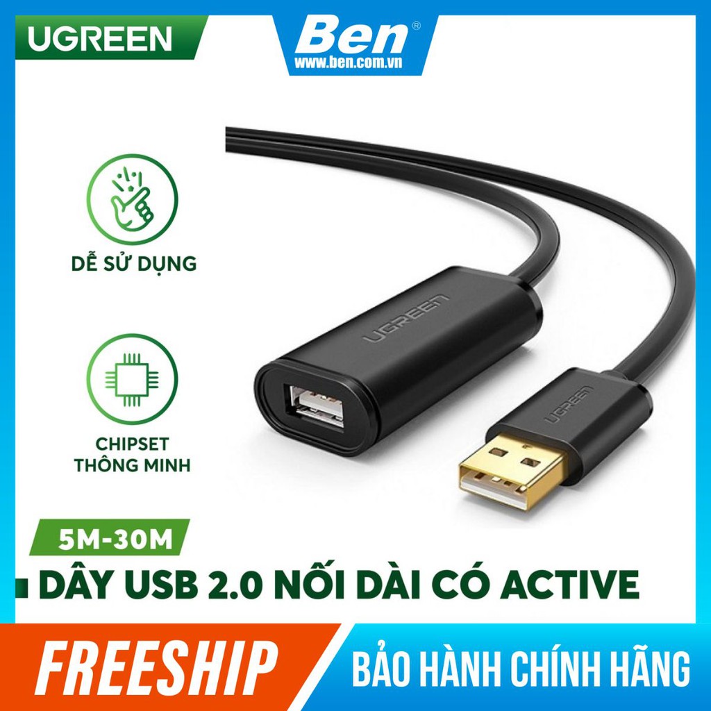 Máy tính & Laptop > Thiết Bị Lưu Trữ > USB & OTG || Dây USB 2.0 nối dài Active có CHIP, dài từ 5-30m UGREEN US121Còn hàng