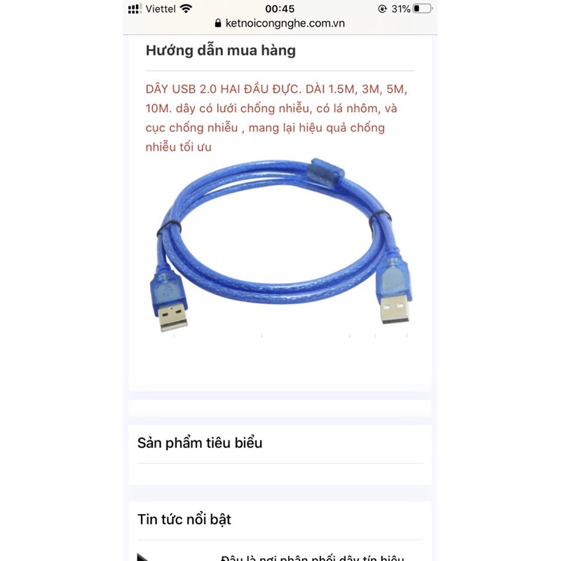Máy tính & Laptop > Thiết Bị Lưu Trữ > USB & OTG || dây USB 2 đầu đực chuẩn 2.0 dài 1.5m, 3m, 5m, 10m hàng chất lượngCòn hàng