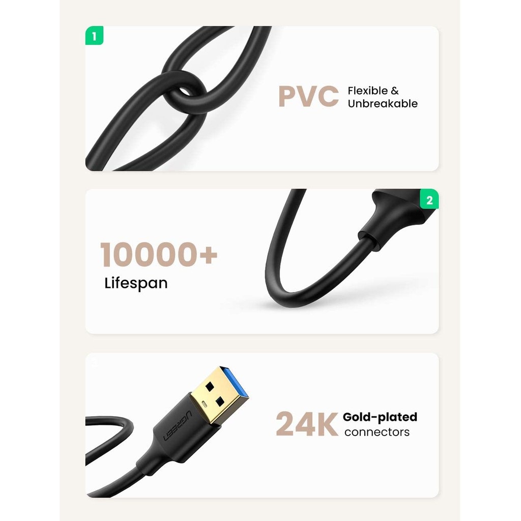 Giới thiệu Dây USB 3.0 2 đầu đực, mạ vàng dài 0.5-2m Ugreen US128 - Hàng Chính Hãng