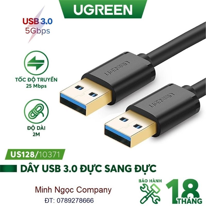 Thông Số Kỹ Thuật Thương hiệu: Ugreen Model: US128 Tính năng: Kết nối USB 3.0 hai đầu đực Chiều dài cáp: 0.5M-1M-1.5M-2M Chuẩn kết nối: USB 3.0 Tốc độ truyền dữ liệu: 5Gbps Màu sắc: Đen Cáp thuần đồng - đầu kim mạ vàng 24K Mô Tả Sản Phẩm Cáp USB 3.0 hai đầu đực cao cấp Ugreen Chính Hãng dùng để kết nối máy tính với ổ cứng, quạt tản nhiệt, bộ chia Hub USB hoặc cáp nối dài USB 3.0 và nhiều thiết bị khác, thuận tiện và nhanh chóng với tốc độ truyền tải dữ liêu lên đến 5Gbps. Cáp USB Male to Male Ugreen được sản xuất chất lượng hiện đại với các lõi đồng nguyên chất 100% và đầu kim tiếp xúc mạ vàng 24k đảm bảo tín hiệu truyền dẫn ở tốc độ cao mà vẫn hoàn toàn ổn định không chập chờn. Cáp USB Ugreen được bảo vệ bằng vỏ nhựa cao cấp và các lớp chống nhiễu đảm bảo độ bền sản phẩm vượt trội hơn so với những sợi cáp usb khác ngoài thị trường