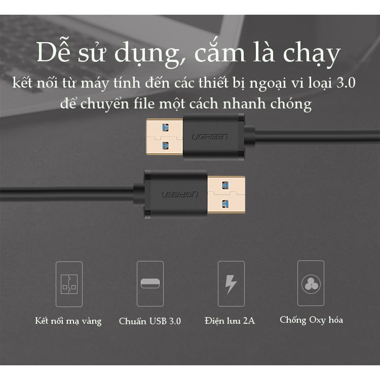 Máy tính & Laptop > Thiết Bị Lưu Trữ > USB & OTG || Dây USB 3.0 đực sang đực mạ vàng, dài 0.5-2M UGREEN US128Còn hàng