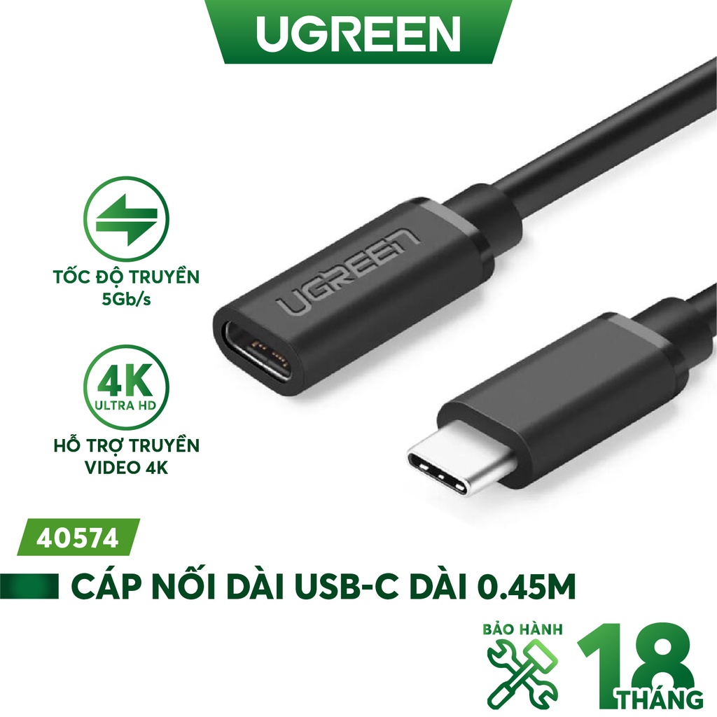 Máy tính & Laptop > Thiết Bị Lưu Trữ > USB & OTG || Dây USB Type-C nối dài 0.45m màu đen UGREEN 40574 - Hàng phân phối chính hãng - Bảo hành 18 thángCòn hàng