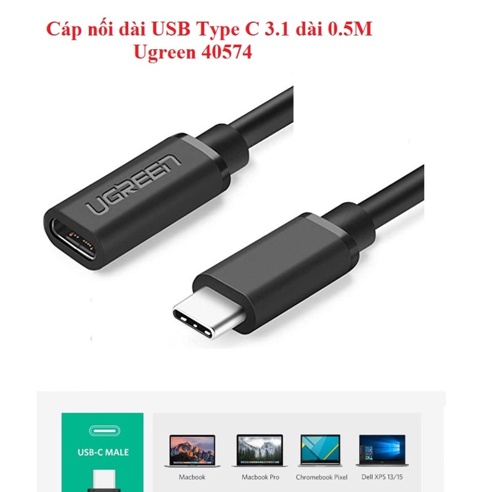 Máy tính & Laptop > Thiết Bị Lưu Trữ > USB & OTG || Dây USB Type C nối dài 0.5m Chính Hãng Ugreen 40574 US312 (USB C 3.1 4K@60Hz PD 60W 5A)Còn hàng