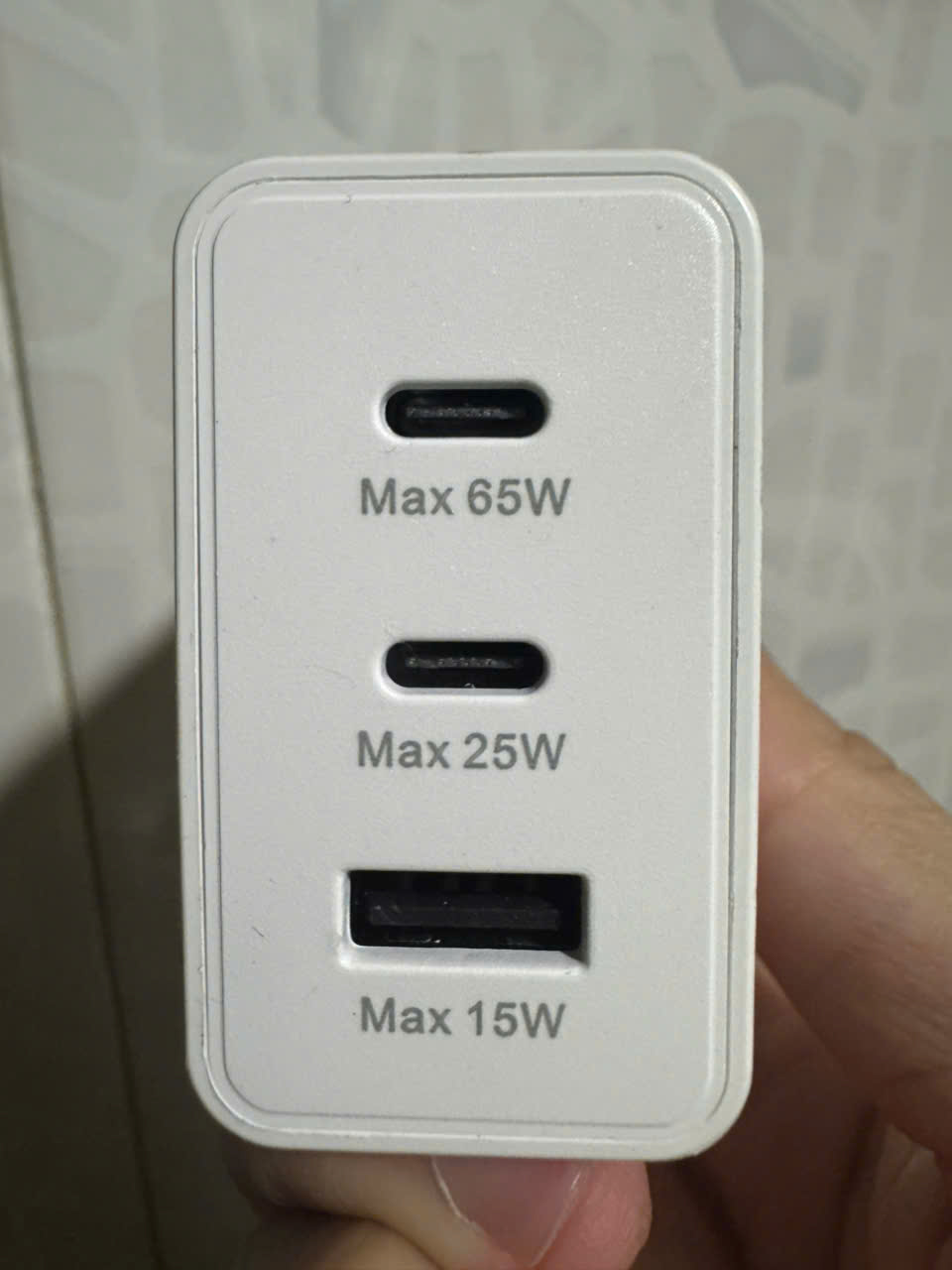- - Bộ sản phẩm gồm: 1 củ sạc 65w (2 cổng type C + 1 cổng USB A) + 1 sợi cáp 2 đầu Type C