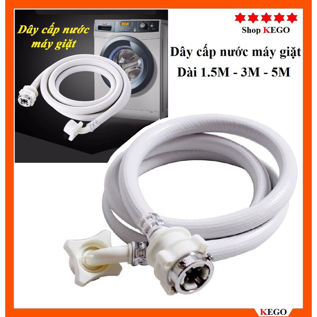 ++++ Dây cấp nước máy giặt dài shop đang có 3 kích thước về chiều dài: 1.5m, 3m, 5m- Dây chất lượng tốt, chịu đựng áp lực nước lớn.