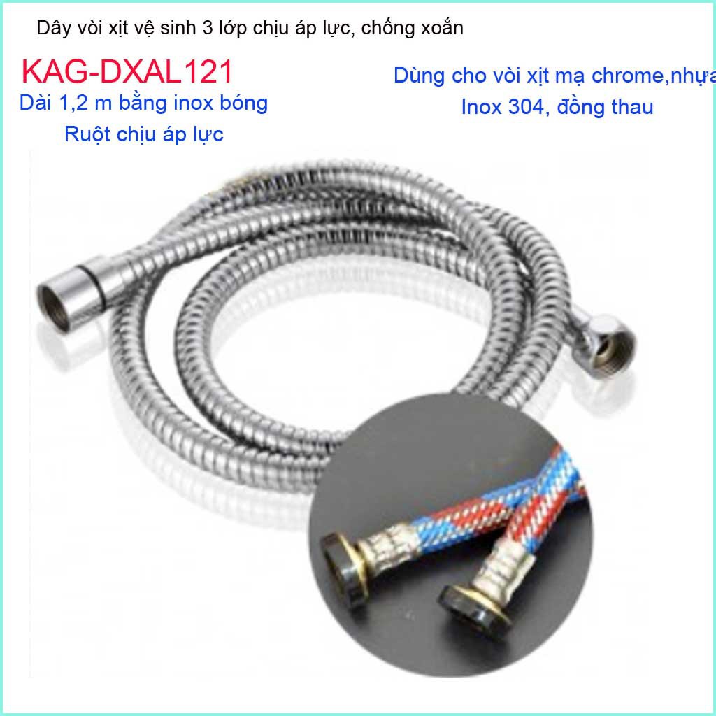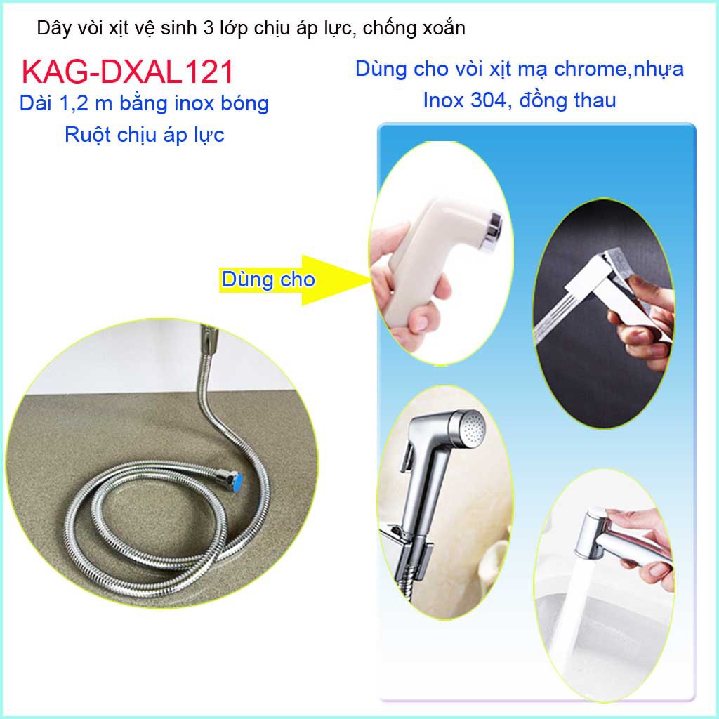 Dây sen chịu nhiệt chịu áp 1.2m KAG-DXAL121, dây vòi xịt dây mềm cấp nước 1.2m giá tốt sử dụng tốt