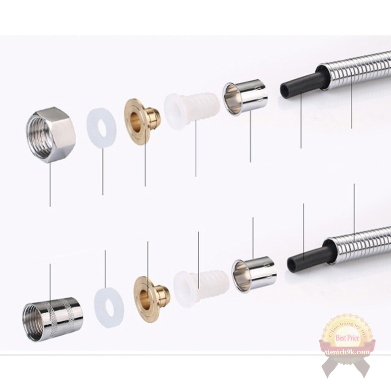• Chất liệu ren ốc : 2 đầu nối ren ốc bằng hợp kim đồng và thép không gỉ