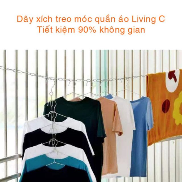 Dây được thiết kế 1 đầu móc và những mắt xích. Các bạn sẻ móc thêm được quần áo vào những mắt xích này để tiết kiệm không gian tủ quần áo hơn hoặc tiết kiệm được không gian khi phơi quần áo