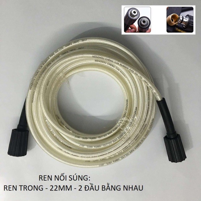 Dây xịt rửa xe áp lực cao 10M trắng chịu được áp lực cao gồm 2 loại:-1 đầu ren 22mm 1 đầu ren 14mm