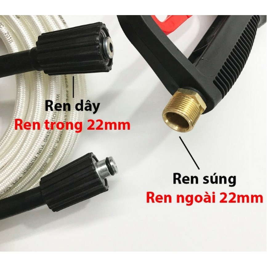 Dây xịt rửa xe 15m + khớp nốiDây xịt rửa xe chịu được áp lực cao gồm hai đầu ren 22mm , chuyên lắp cho máy rửa xe áp lực cao.
