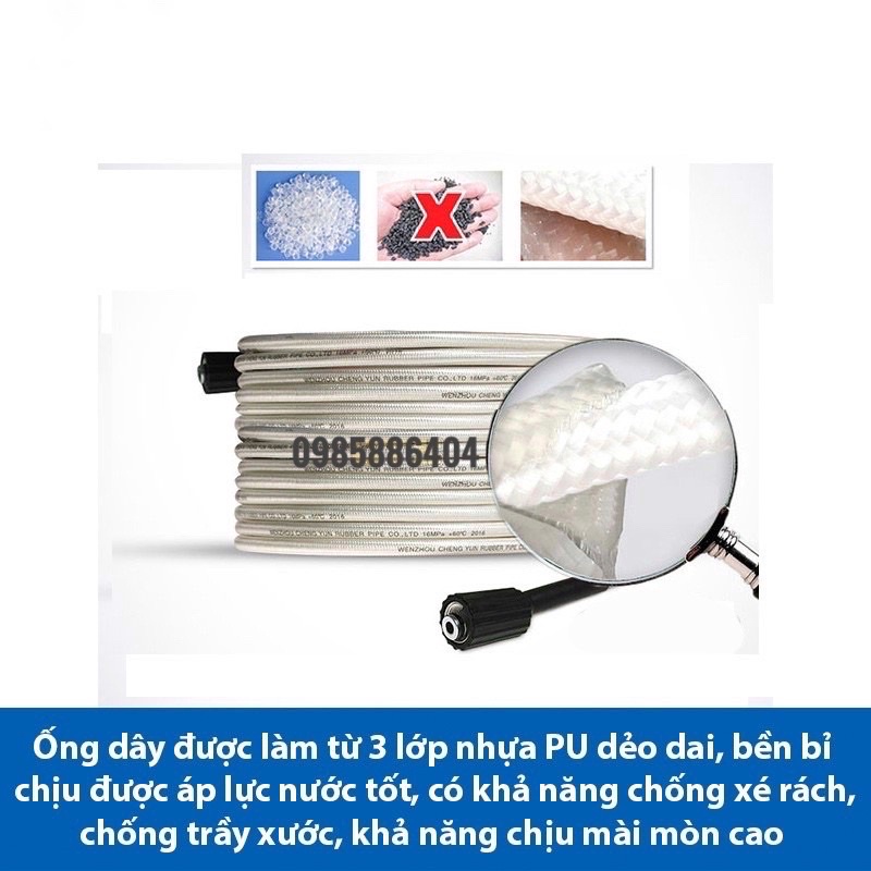 - Với thiết kế bằng chất liệu cao cấp ống dây rửa xe cho bơm áp lực cao được sản xuất theo công nghệ - USA và Hàn Quốc.