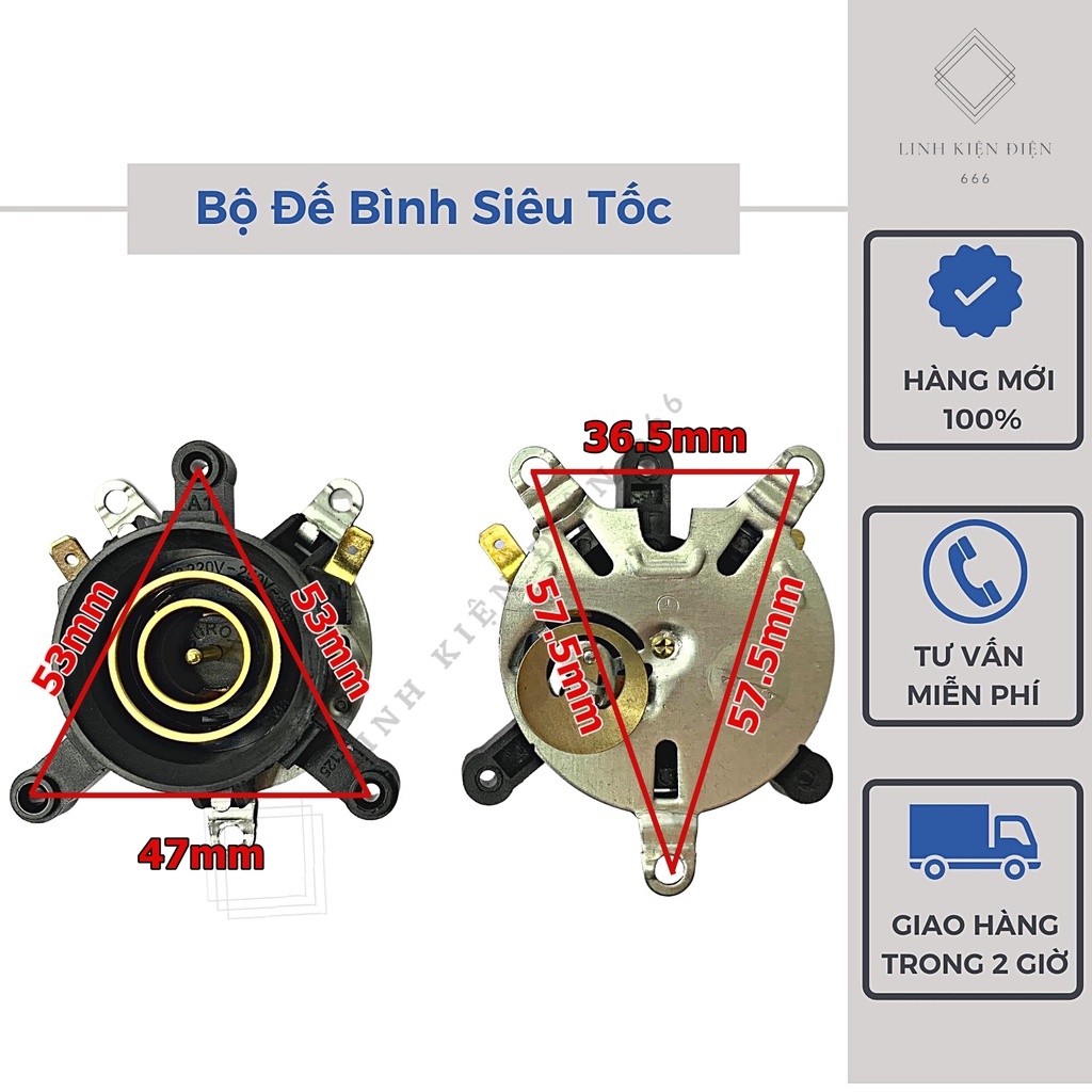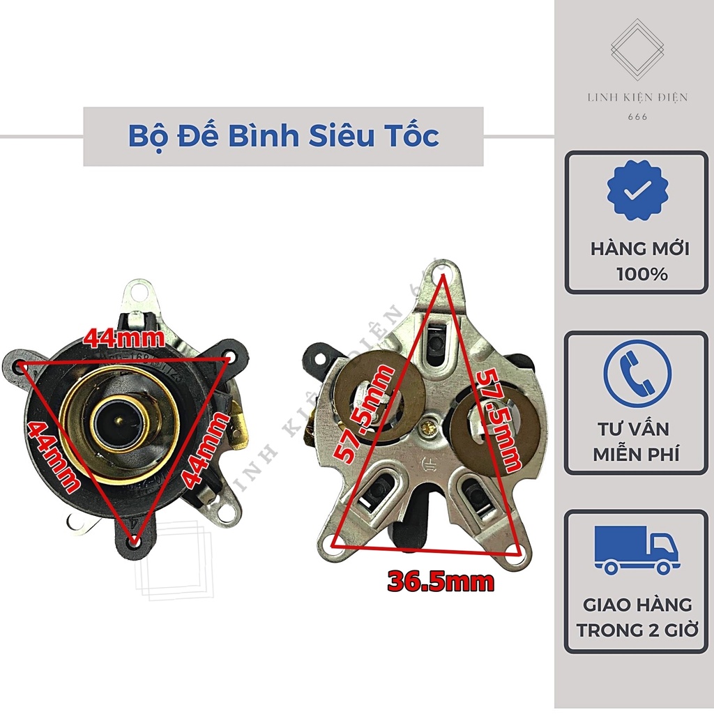 - Hiện tại trên thị trường có rất nhiều loại Đế Ấm Siêu Tốc ( Chân Đế Bình Siêu Tốc). Chính bởi vậy người dùng thay thế cần chú ý một số thông số kích thước bắt vít của các loại Đế Bình Siêu Tốc.