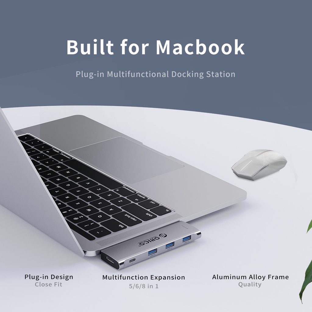 Đế cắm đa năng 5 trong 1 cho MacBook Orico 2CT-5H-GY Chuyển đổi cổng USB Type C trên Macbook Pro/Air sang cổng 5 cổng kết nối phổ thông . Bao gồm : USB 3.0 x 3 cổng, 1 cổng HDMI, 1 cổng Type C Thunderbolt3 hỗ trợ Power Delivery (PD Fast Charge) lên tới 100W.