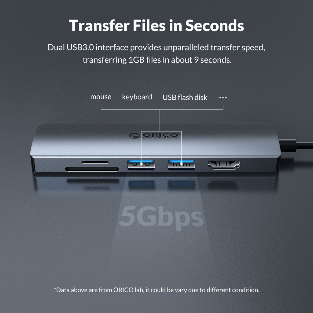 Đế Cắm Đa Năng 6 Trong 1 Cổng Type C ORICO MC-U601P - Hàng Chính Hãng