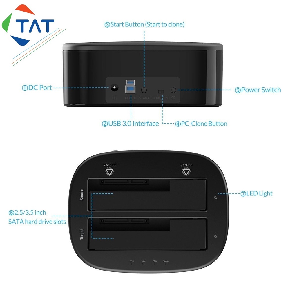 - Model: 6228US3-C hỗ trợ tính năng Offline Clone tự động sao chép (Ghost disk to disk) cho phép sao chép từ ổ này qua ổ kia qua 1 nút bấm, không cần kết nối với máy tính.