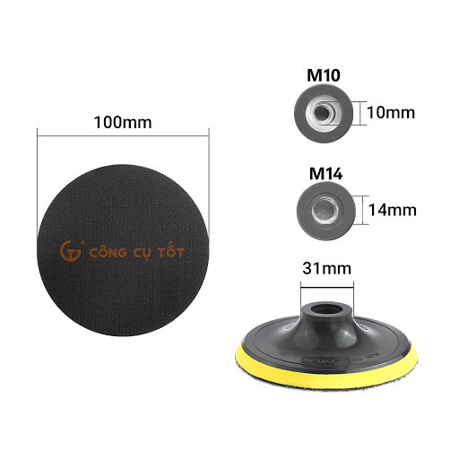 Đế chà phù hợp để dính các loại giấy nhám, giấy chà, miếng đánh bóng có đường kính 100mm.