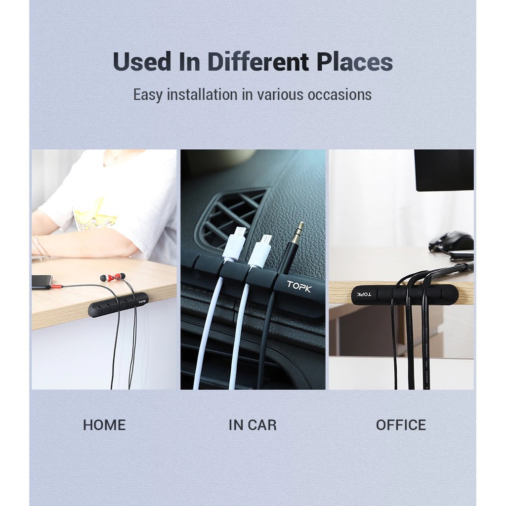 1 · GIẢI PHÁP HIỆU QUẢ GIỮ CHO CÁP GỌN GÀNG - Thiết kế tông màu mát mẻ với nhiều khe cắm, cho phép bạn xếp gọn nhiều dây cáp với một kẹp cáp, tương thích với cáp có đường kính từ 5 mm trở xuống, cáp âm thanh, cáp máy tính, cáp audio, dây tai nghe xoắn, và các loại cáp khác.2 · VẬT LIỆU RẮN CHẮC - Được chế tạo bằng vật liệu silicon bền thay vì nhựa, kẹp TOPK chắc chắn hơn để giữ nhiều cáp cùng một lúc và duy trì độ đàn hồi tốt.