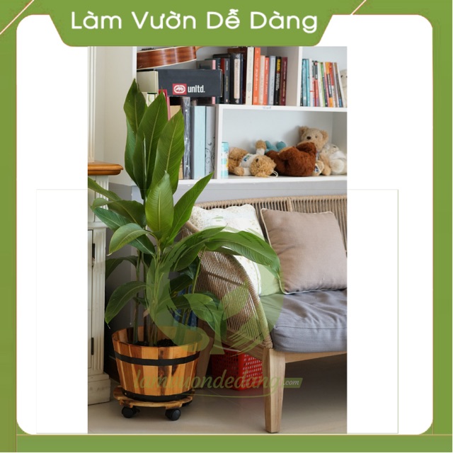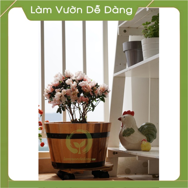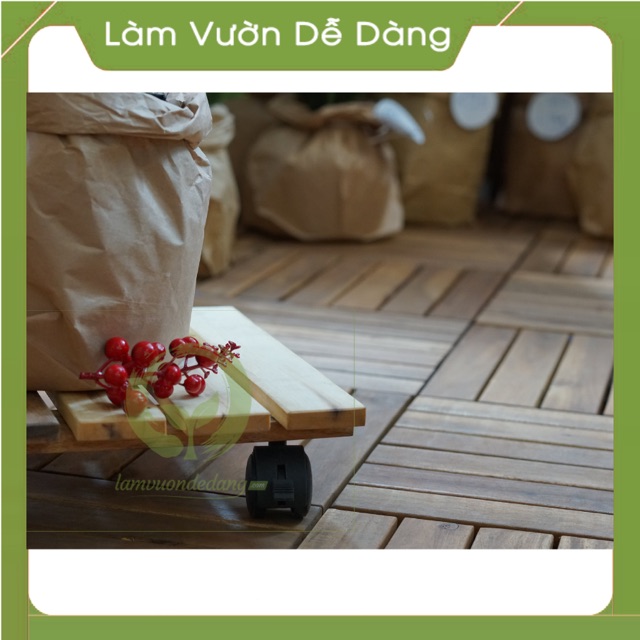 Đế đẩy chậu cây được làm bằng gỗ tràm, lau dầu lanh chống thấm