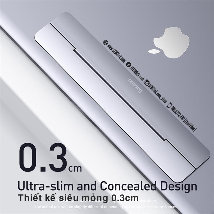 ĐẾ ĐỠ MACBOOK BASEUS PAPERY ZHISHI SIÊU MỎNG TẢN NHIỆT 13-17 INCH CHÍNH HÃNG với chất liệu hợp kim cao cấp chống rỉ sét, độ dày chỉ 0.3cm với 2 tông màu bạc và xám . Khi đóng lại có thể ôm sát vào thân máy tạo sự liền mạch và hài hoà với chiếc Macbook của bạn. Sản phẩm khuyên dùng cho laptop dưới 17inch và cân nặng dưới 2kg và có mặt đế bằng phẳng.